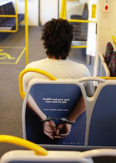 「ラクガキをしたら次の停車駅は刑務所だぞ」