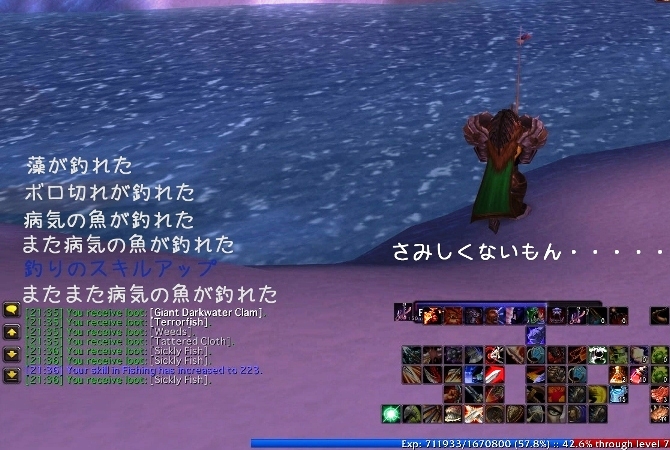 本来はモンスターやらプレーヤーと戦うゲームなのだが、ミジンコはひたすら釣りに勤しむ日々。