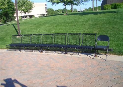 よく見ると右端のパイプイスはベンチの横に置いてあるわけではなくて、ベンチのシート部分がひとつ無くなってしまっている場所を補っているのさ。