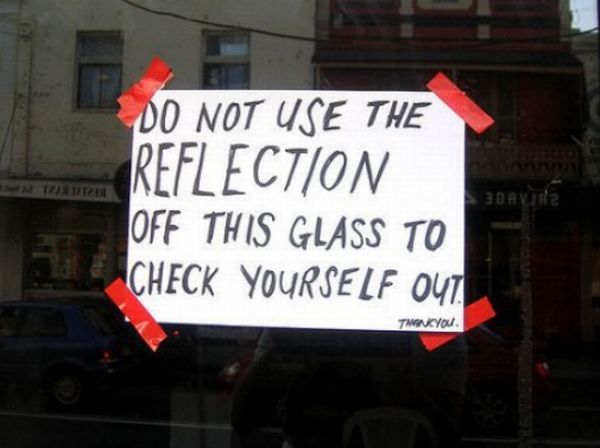 『このガラスを鏡代わりにして自分の身だしなみチェックに使うのはやめて!』