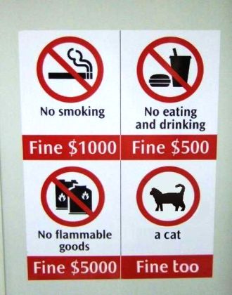 ところで、タバコがダメで可燃物がダメで、飲食禁止でヌコはFine too・・・