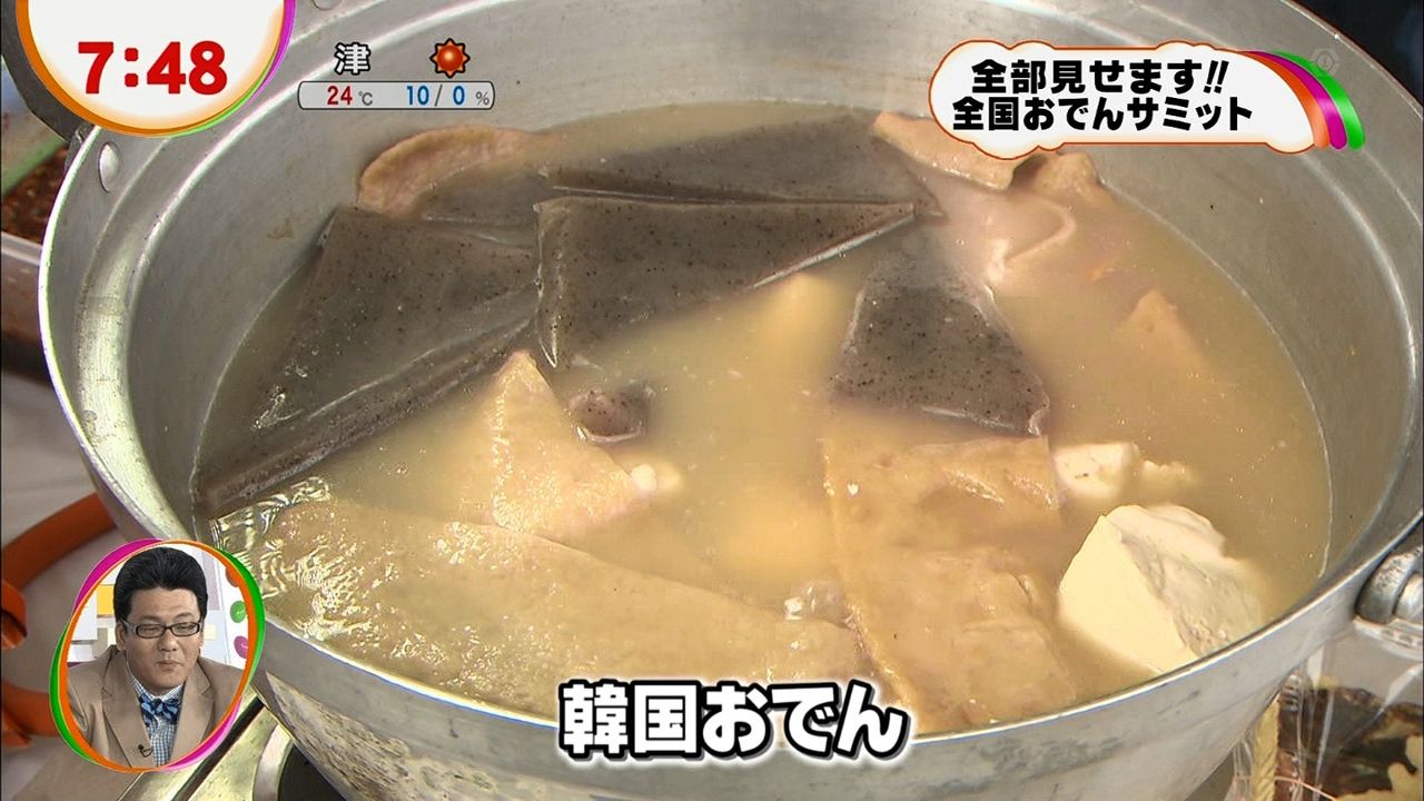 フジテレビの言う韓国おでん、安定の見た目の悪さは韓国料理風ではある。10地域のおでんが勢揃いとあるがそこに韓国は差し込む強引さは相変わらずのフジテレビだ。