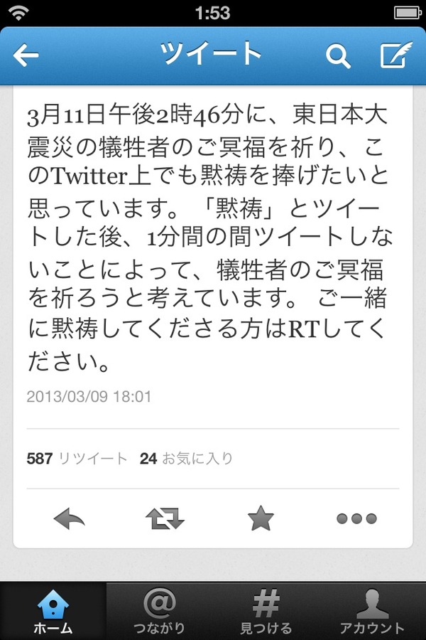 ツイートの後に黙祷だって?