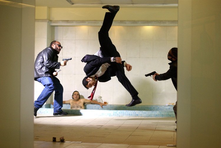 銃も使うが基本はこのマンドリルキックで悪い奴等を粉砕する。体操でオリンピックに出場したら相当イイ線を行きそうだが忙しい殺しの仕事との両立が難しいのだろう。ちなみに上の画像でお風呂に浸かっているのがターゲットである作品冒頭のかませ犬のマフィアのボス。音楽を聴いていたラジカセをお風呂に投げ込まれて電気ショック死。マンドリルキックをするにも値しないと判断されたらしい。ちょっとせつない。