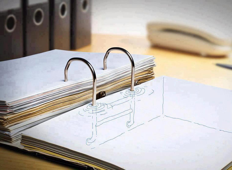 デスクの上にプール