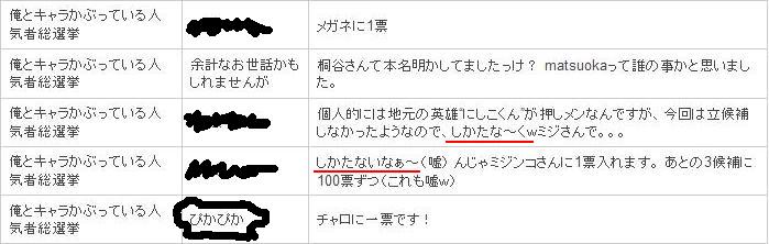 仕方なくミジンコ候補に入れている者たちが2名!!!貴様ら!打ち合わせしたんか!なんで「仕方なく」ってキーワードが一致しているんだ!喝!投票は有効じゃ!