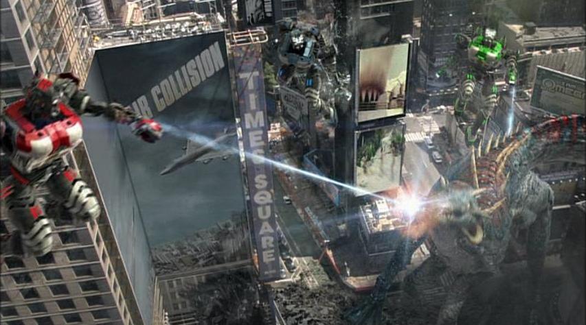 その後、死んだはずの巨大サンマは逃亡し、再び大暴れ、ニューヨークを破壊しまくる。浮気騒動を無事に解決した3馬鹿RGBたちはロボットが自分が動くとおりに反応するけれどロボットが受けたダメージを痛みとしてパイロットが認識するという無駄にやっかいな新システムを導入したロボで出撃。さっきまで飲んでた3人なので飲酒運転だ。相変わらず怪獣にダメージを与えることができない。どんな武器でも使って良いということで街ごと破壊するような戦いっぷりを見せる3体のロボたちなのだが怪獣はノーダメージ。ダメージを受けない怪獣に対して怪獣に攻撃されるたびに超痛がるロボパイたち。新システムは戦闘に向いていない。戦況は絶望的だ。