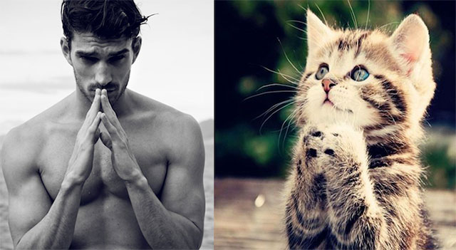 男性モデル vs 猫