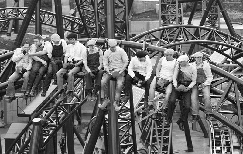 昔のジェットコースター作りの職人さんたち