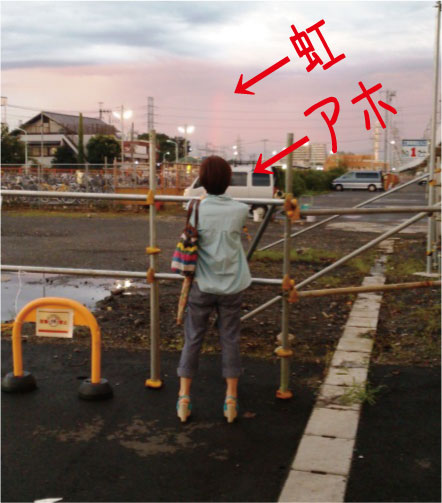 ミジンコの位置からちょうど虹の真正面に立ちスマホで撮り始めるアホ一匹。身長170cmと無駄に高いので尚更邪魔なのであった。信じられるだろうか?師匠の撮影を悠々とブロックして自分が撮るだけ撮ったら「さぁ、行きましょう!」なのだ。