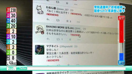 選挙特番でのツイートのひとつ。