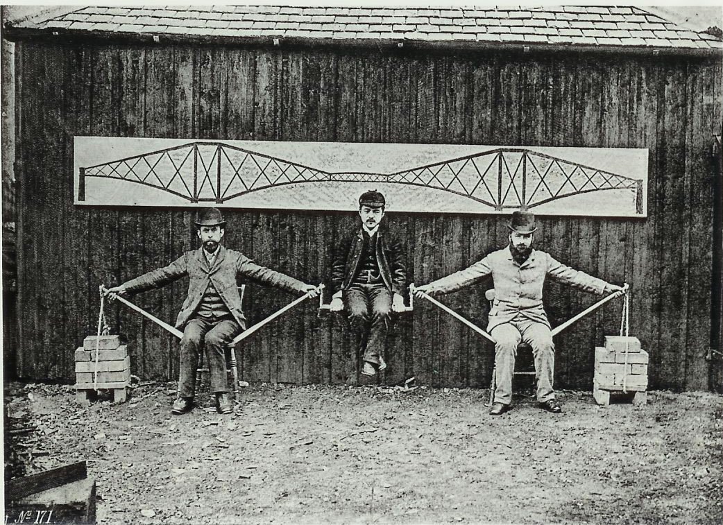 何より上のトラス橋の構造を、下の様に人間の身体と最低限の部材で表現した簡易モデル化のセンスが素晴らしい。学生時代にそのセンスが欲しかった!!