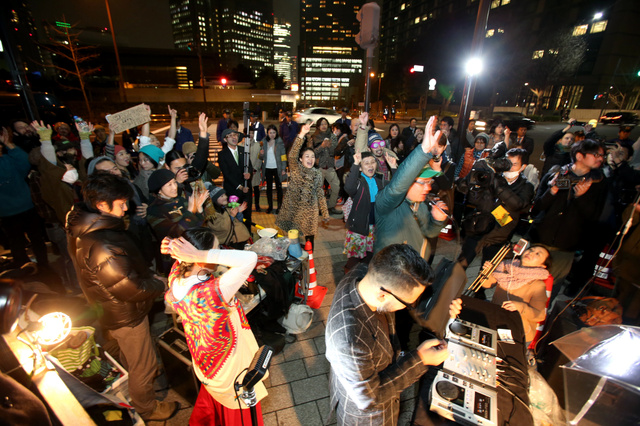 午後六時からは官邸前の「DISCO(ディスコ)化計画」で、二十代や三十代の若者らが音楽に合わせて体を揺らし不満を表現。ディスクジョッキー(DJ)が音楽を操る特設ブースも登場し、「平和を祈りながら踊りましょう」の掛け声でダンスミュージックが次々に流れた。
