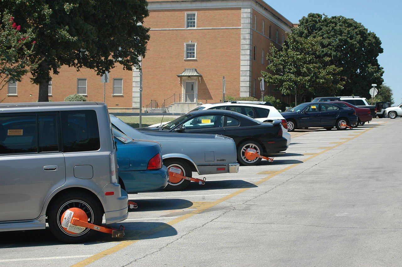 全車が駐禁のタイヤ止めを付けられていた・・・・。