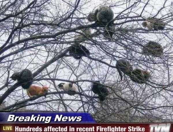 高い木に登って降りられなくなったヌコの救出も消防署の仕事なので、ストの影響がこんなとこに……www
