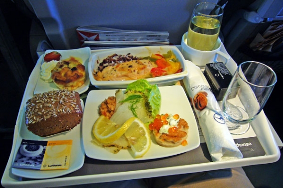 自分、機内食でちゃんとした食器で食べたの、タイからの帰りにダブルブッキングがあって、ビジネスクラスに乗った時だけ、3時発の真夜中の便なのに、サラダとパティの三種盛りとワインが出て、その後は銀のトレーに乗ったトリフチョコレートとコーヒーが。。ブランデー飲んでる人も居た。。確かに太るね、、