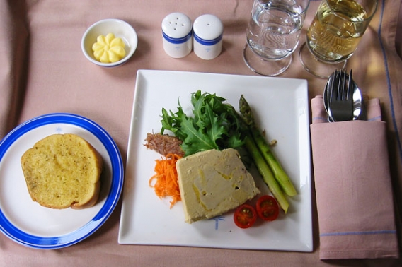 パンは機内で温めたもの。おかわり自由。だから(ry
