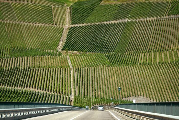 葡萄畑でしょうか?影が出来ないように南北に植えてあるのかな