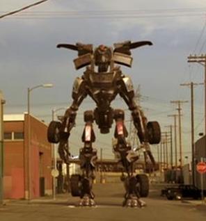 今回の「トランスモーファー」が前作と大きく異なる点は、ちゃんと変型するロボットが登場するところ。携帯電話、パラボナアンテナ、クルマがちゃんとトランスモーフする。なんでか残念な気分になったミジンコ。右の画像のとおり、なんとなく車からロボットになりましたよってカタチになっているトランスモーファー。タイヤが手足についているし、間違いない、彼はクルマがロボットになったものだー(棒読み)