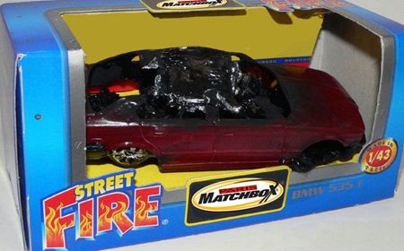 路上で炎上した車のおもちゃ