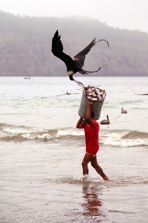 海にいっぱい泳いでいる獲物をわざわざこうやって獲る鳥って・・・。