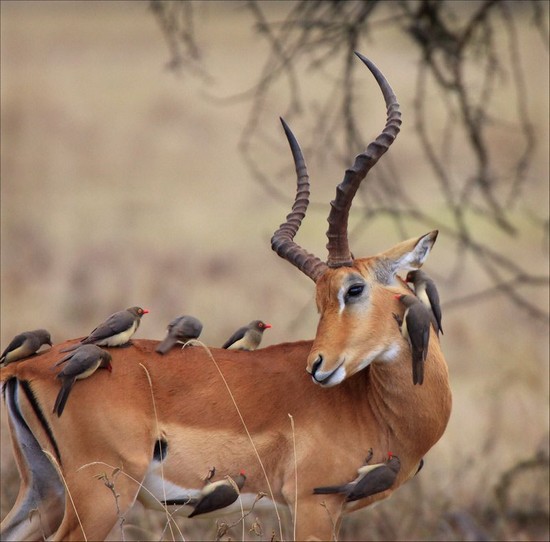 この鳥たち、虫をつついているだけではなく、皮膚を破って血をすするってな話もありましてな、ゲフンゲフン・・・。