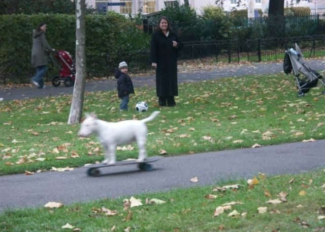 通行人への迷惑を厭わないスケートボーダーたちよりもずっと上手いイヌでした。