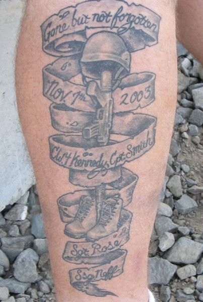 左の画像は2003年11月1日の作戦で沢山の仲間を失った海兵隊員のタトゥー。戦死した仲間の階級と名前、そして「逝ってしまったが一生忘れない」と記されている。
