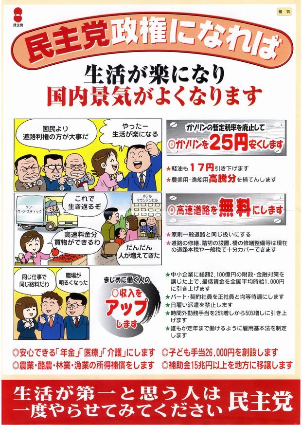 書いてある子とを真に受けて「民主党に一度やらせてみよう」などと思った知性の持ち主は選挙権を停止すべき。