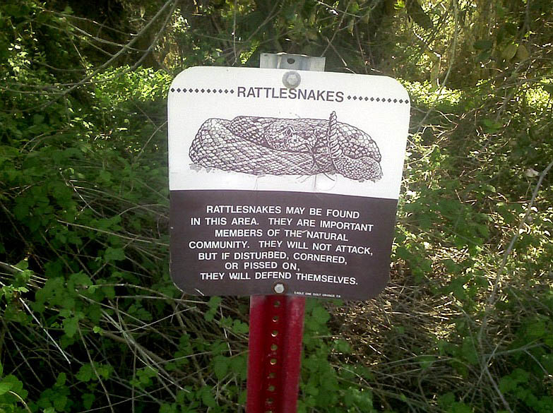 『この地域にはガラガラ蛇が生息しています。彼等もまた自然界に必要な仲間です。』