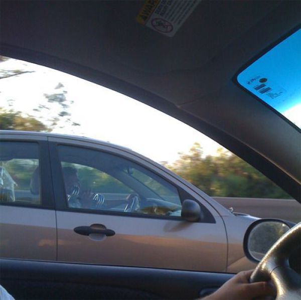 ハイウェイで運転中にダンベル