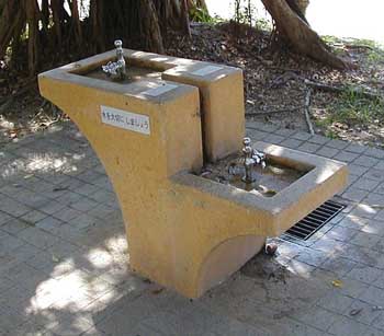 今、小さな公園ってトイレすらも(なんでも事件を未然に防ぐためとかいう悲しい理由で)閉鎖されたりついていないって場合が多いらしくて、水道も1箇所しか無かったりする。この写真のような背の高い人用と低い人用の2タイプがある水道なんて滅多に見かけない。