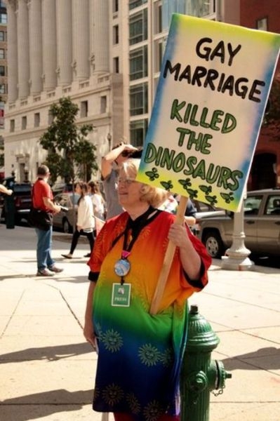 ミジンコは同性愛者がインタビューで答えていた「これは同性愛の問題ではなく、納税者の権利の問題だ」という意見に同意。義務を果たしている納税者が権利を得るのは至極当然だと思う。少なくともこの写真の差別主義丸出しのババァの意見が通る社会なんておっかなくて住めないしね。