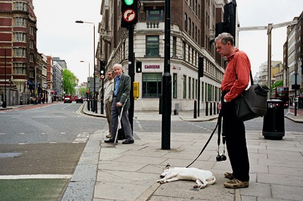 信号待ち中にストライキするイヌ