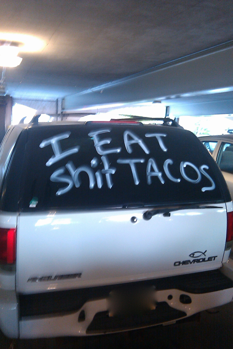 いそいでたけど、一ばんはじの TACOS という字だけふいてあげました。