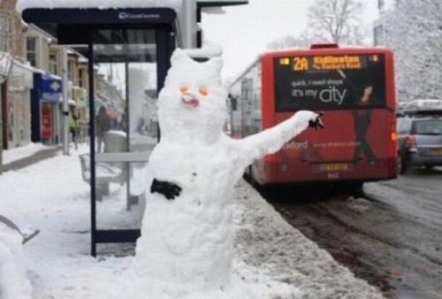 凄い大雪なんでタクシーに手を挙げた人が雪で固まっちゃっただけとの説あり。
