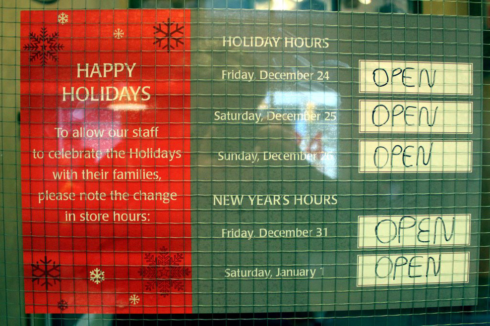 『当店の従業員が年末年始に家族と過ごす時間を確保するために営業時間を右記とさせていただきます。』