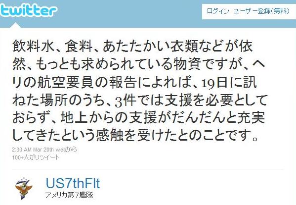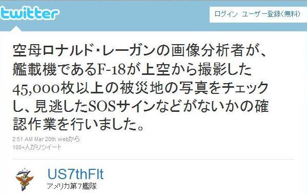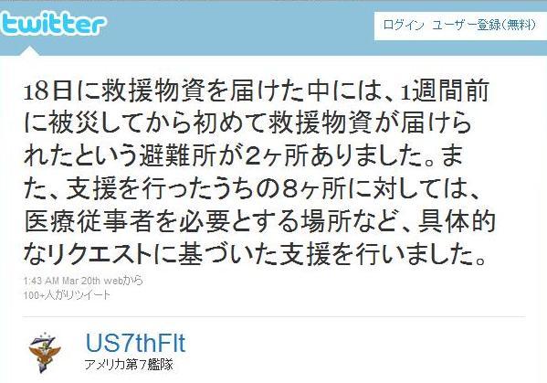 アメリカ第7艦隊が日本語にてツイートを発信している。