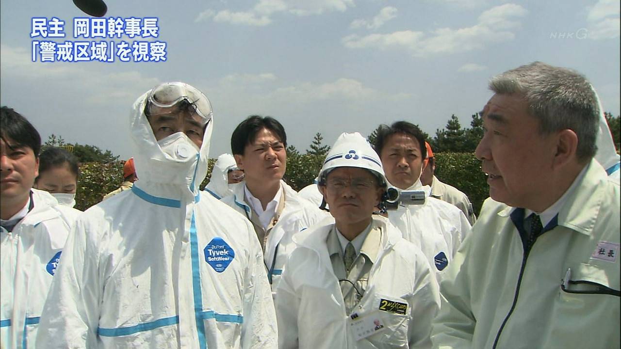 岡田幹事長、20キロ圏内の警戒区域を視察