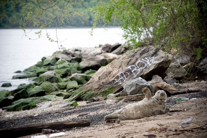 なんでも東京湾にそそいでる川は汽水域が広くて、豊富な種類の魚がいるので、アザラシが入ってくるそうですよ。