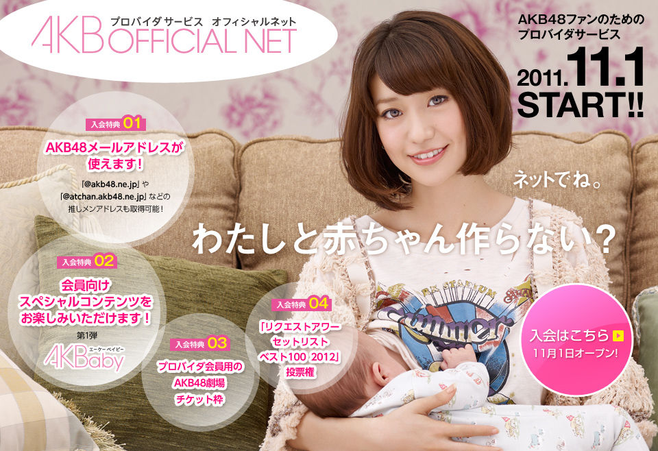 AKB公式プロバイダーに加入するとAKBメンバーとの仮想子作りができるんだとさ・・・・・。