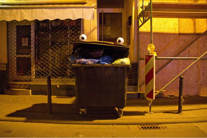 ひょうきんな表情にしてあるけど、この巨大なゴミ箱が満杯になっているのは今の社会の象徴かもしれない