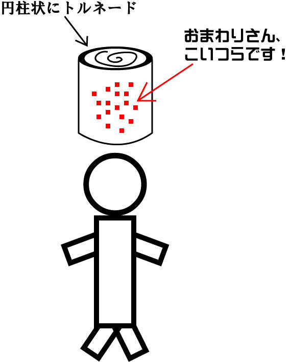 この人間の頭上を円柱状にグルグル飛ぶ虫の群れが存在するらしい。しかも人間を追い続けるらしい。その人間が死ぬまで・・・・・。嘘!死ぬまでとかは嘘!ともかく人間の頭上で群れをなすらしい。