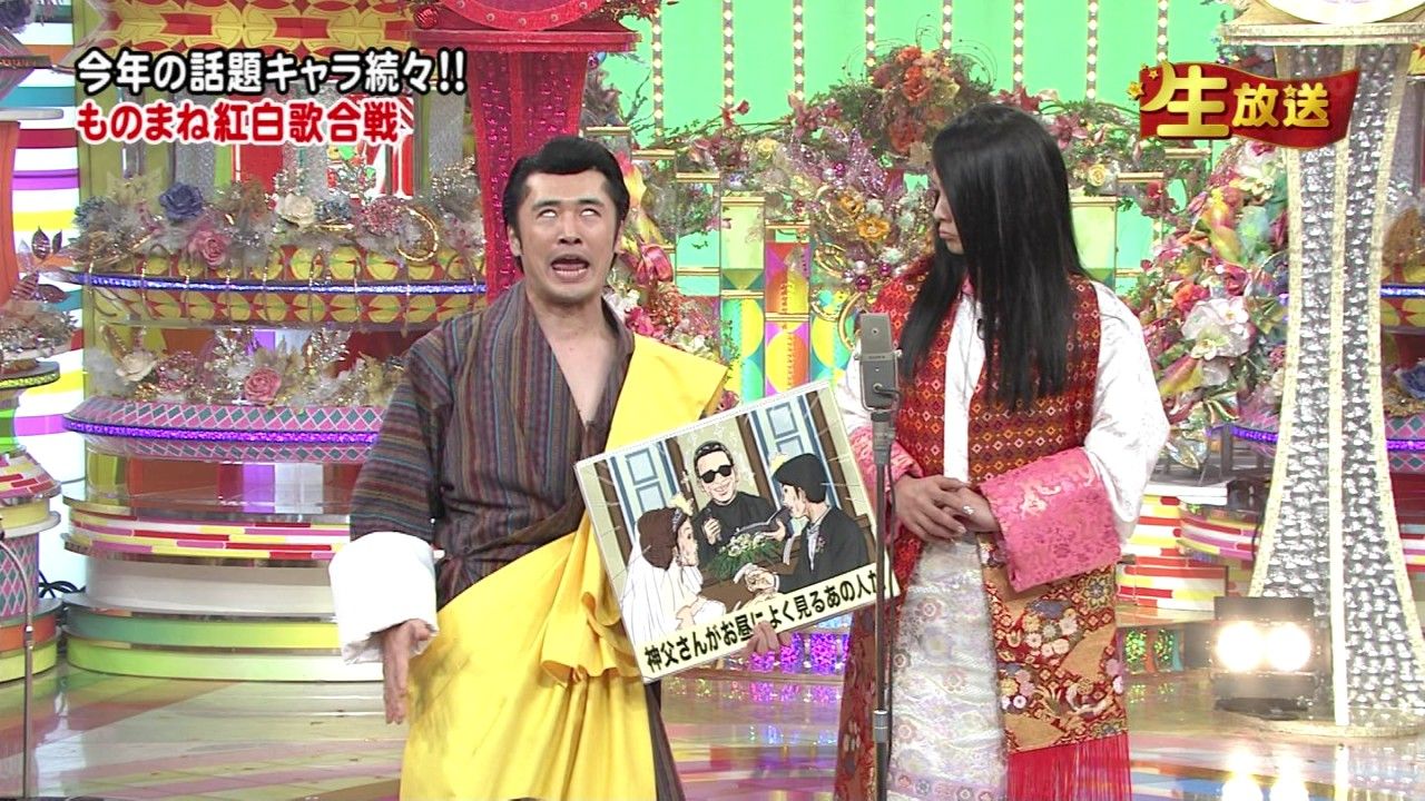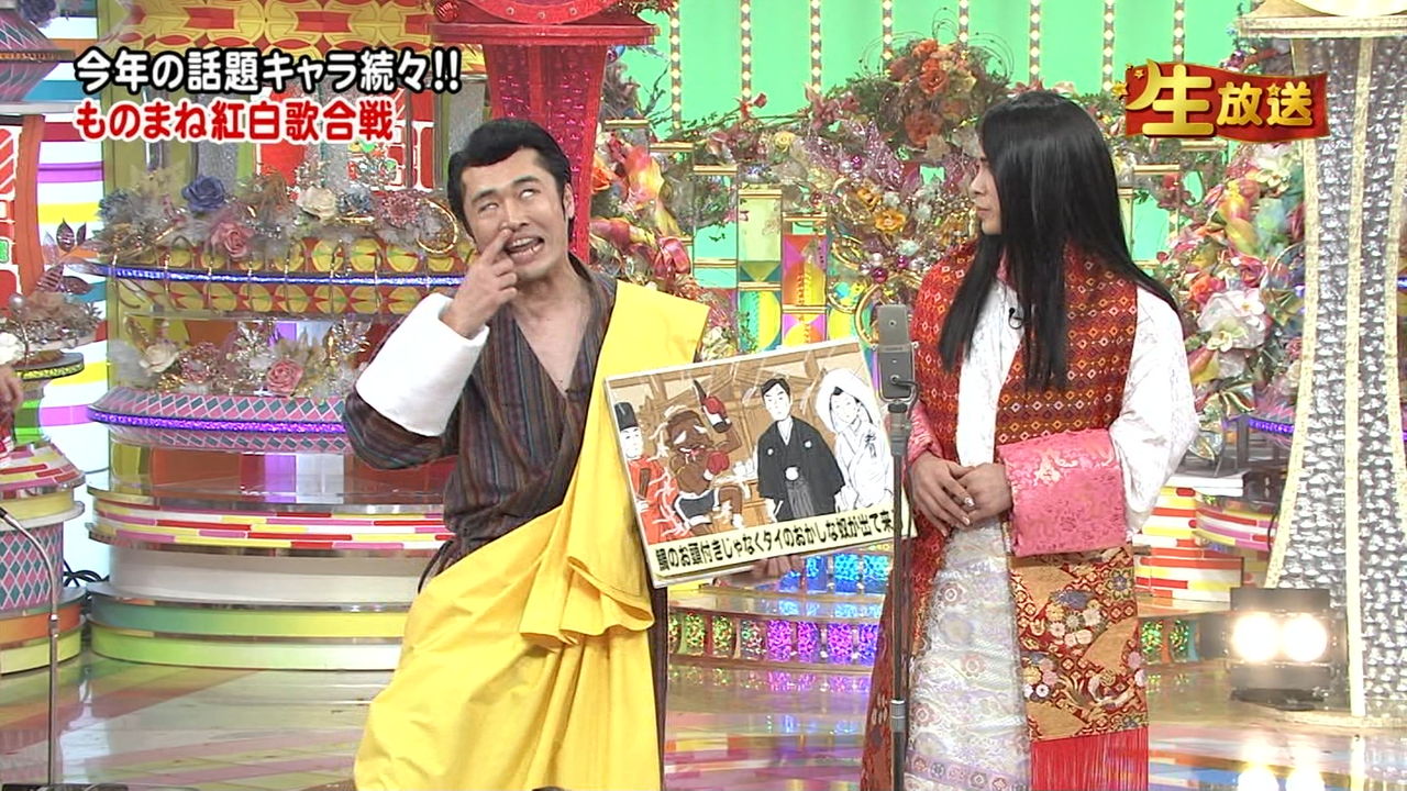 そんな芸がどこにあるのかも分からない芸能人二人によるモノマネ(?)が以下のとおり。ブータン国王ならびにブータン国民の方々には謝っても謝りきれない。本当に恥ずべき行為だ。