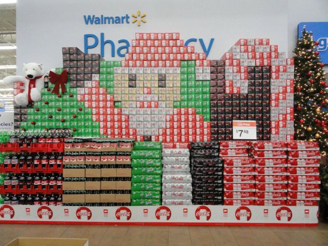 コカコーラや7UPのケースでサンタ