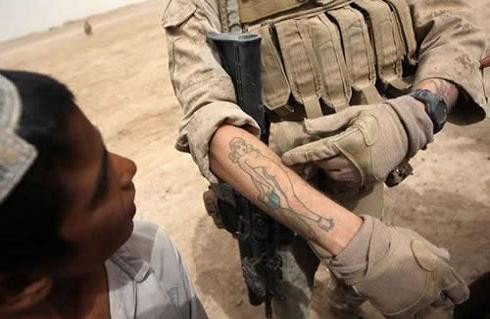 どう見ても失敗タトゥーなんだけれどエロ本などが禁止されている社会では過激な描写らしい。
