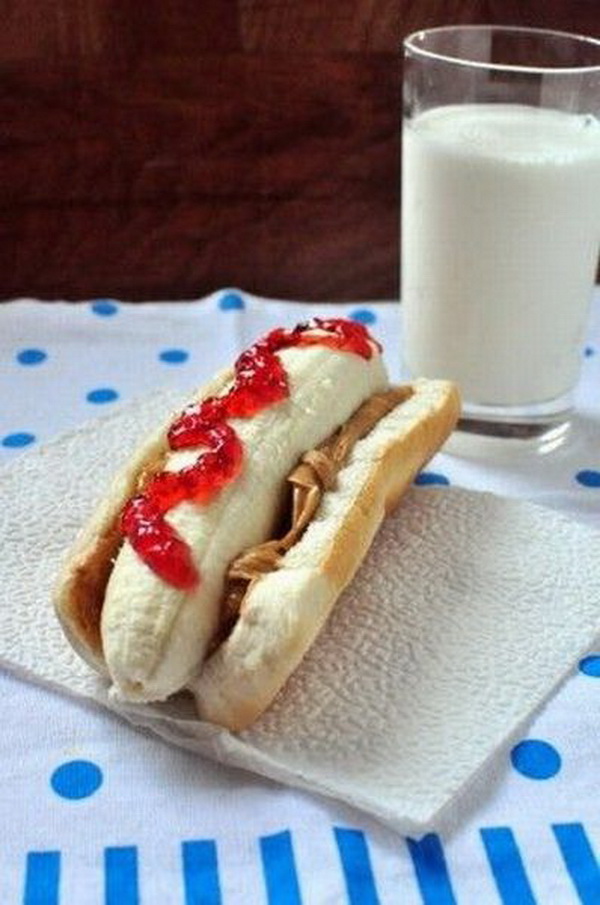 ジャムかピーナッツバターのいずれかではなくて、両方を使うのですよ。そしてトーストの場合はバナナのスライスを挟むわけです。・・・・(-_-;)