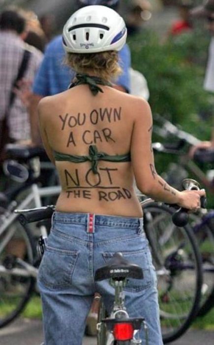 一部のマナーを守らない人が多いのには、困ったもんだです。子供を車に乗せてる時に、こいつらに指とか立てられたら、『てめーなんか、事故っちゃえ~!』と、3回お星様に唱えます。何で道路を横列で3台とか4台とかで走るの?って聞きたい。確かに、自転車にも道路を走る権利はあるけど、ちんたら、話ながら横に並んで走ってんじゃーねーよ!って(車の中で叫びます)。特に、何千ドルもする高っけー自転車乗ってる女!指立て指数がムッチャ高いです。普通にマナーを守って、走ってる自転車野郎は、素敵です。
