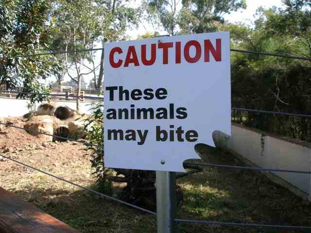 『警告 ここにいる動物たちは咬みつく場合があります』