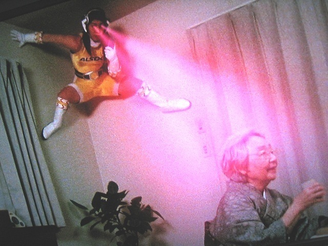 お婆さんにビーム